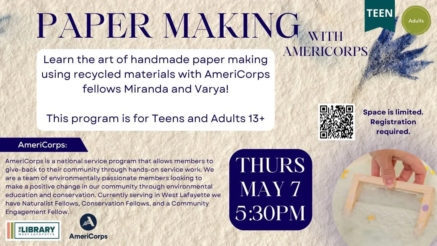 Learn the art of handmade paper making using recycled materials with AmeriCorps fellows Miranda and Varya!